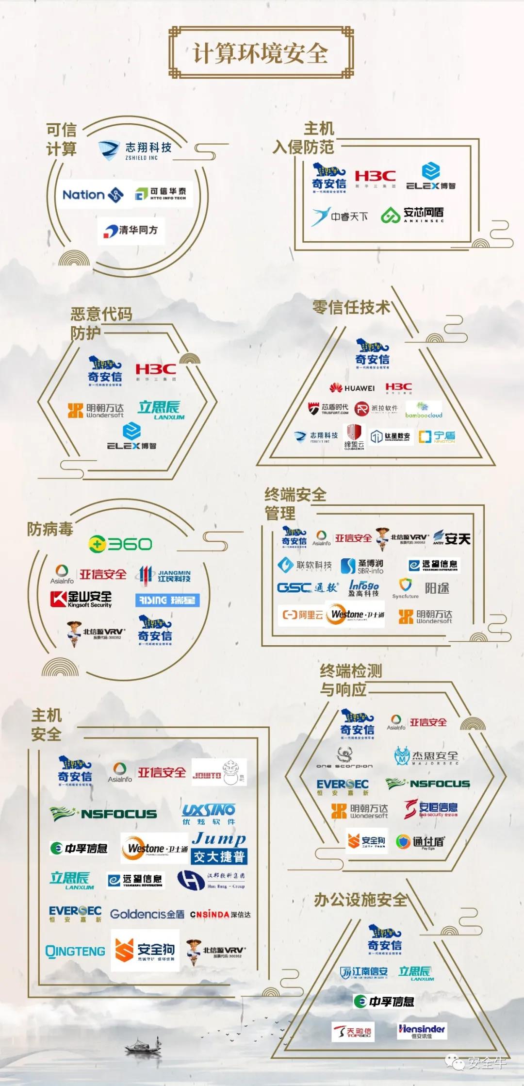 經過近3個月的調研收集,安全牛2020年中國網絡安全行業全景圖(基于2019年度申報數據)正式發布。本次發布的全景圖,共分為16類一級安全領域(實際收錄產品15類),100類二級細分領域(實際收錄88類),共涉及313家國產網絡安全企業和相關行業機構,完成實際收錄1143項。
