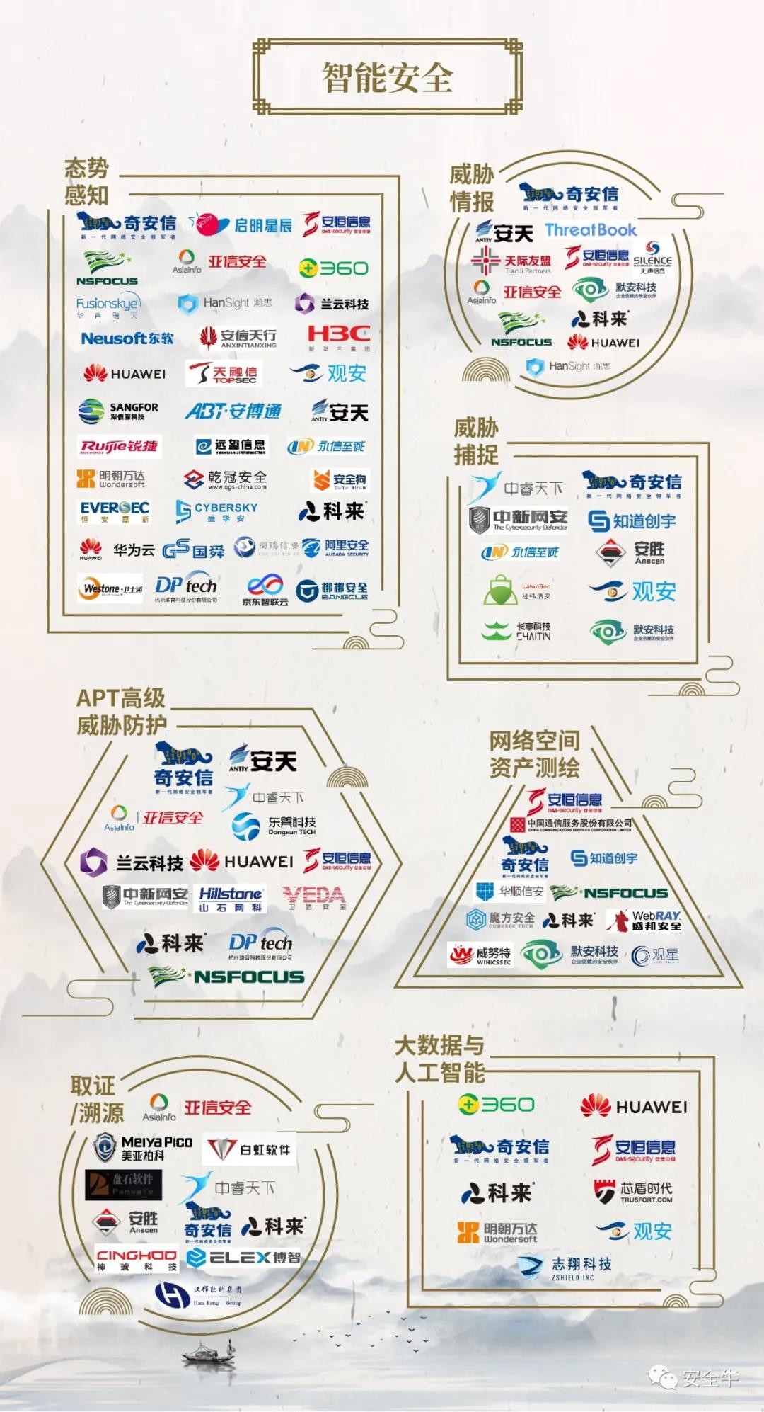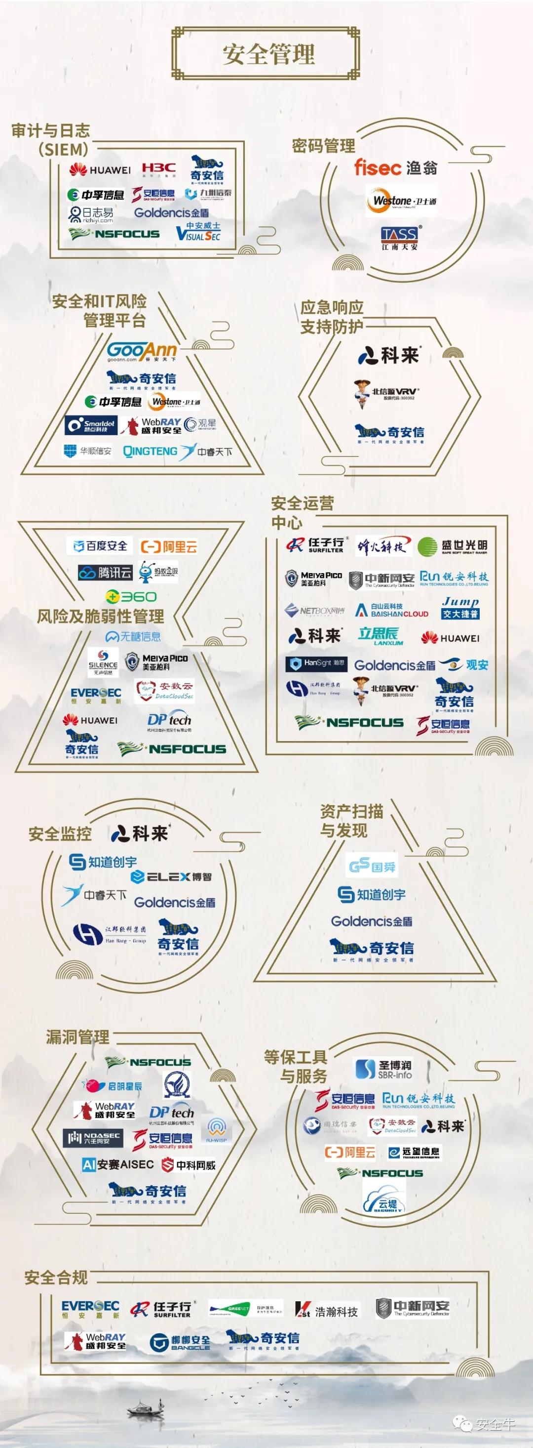 網絡安全技術與企業業務、法規和顛覆性創新技術(例如人工智能、物聯網、云計算、大數據)伴生,快速融合演化,一直具有非常明顯的安全業務碎片化、復雜多樣化的特征,在實際應用中,相關技術的產品化形態也有很大差異,這都給全景圖產品的分級分類帶來諸多挑戰。 在本次全景圖更新中,安全牛通過與各領域領先安全廠商、安全行業資深顧問專家的調研及探討,并結合最新等級保護2.0要求和相關標準要求,對全景圖分級分類進行了較大調整,力求更加科學、更加規范、更加全面的展現當前我國網絡安全產業的發展狀況和企業能力。